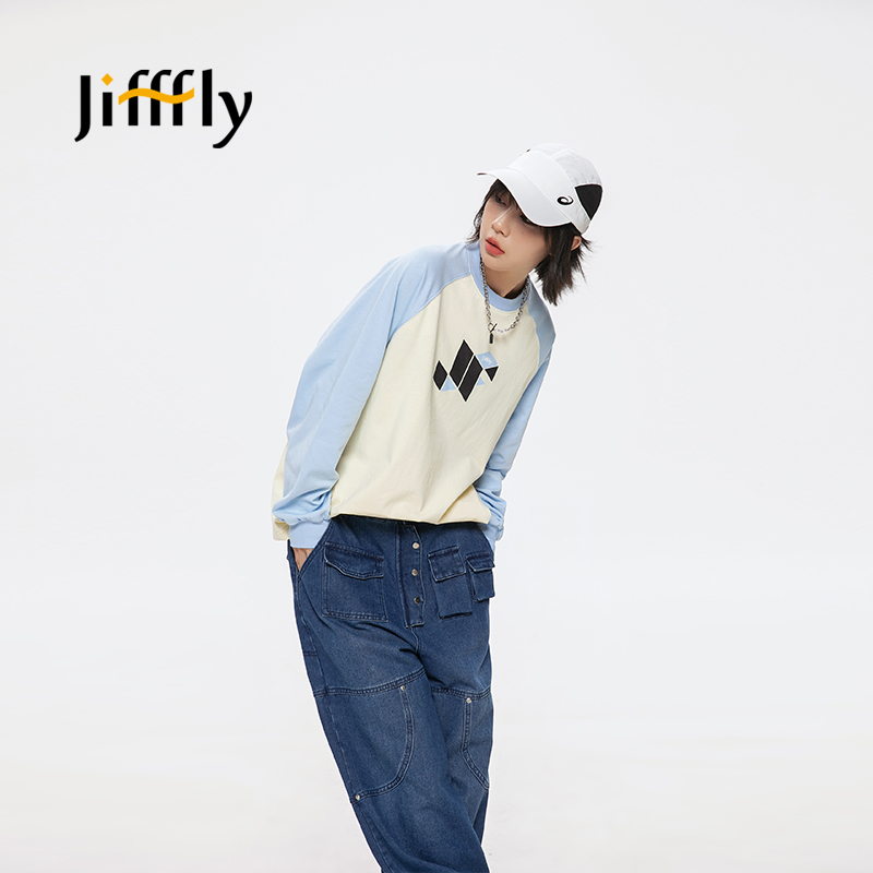 宽松百搭圆领情侣款 Jifffly长袖 美式 T恤2025夏季 内塔上衣女 新款