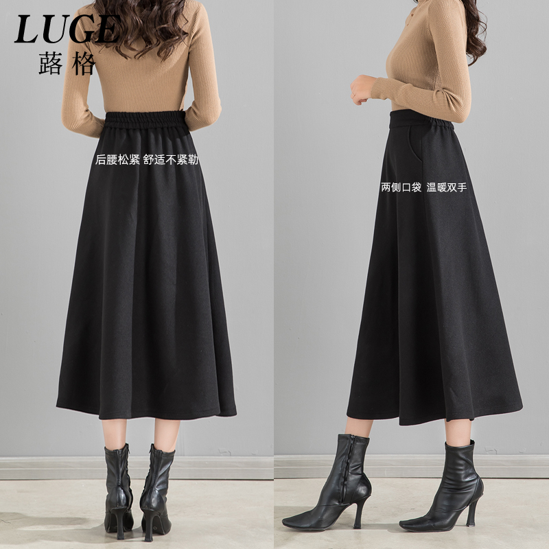 半身裙秋冬显瘦a字半身长裙大摆冬裙黑色毛呢加厚冬季 裙子半裙女