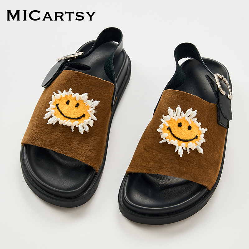 手工钉珠笑脸一脚蹬休闲凉鞋 MICartsy王紫珊配饰车to go系列新款