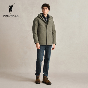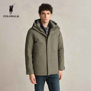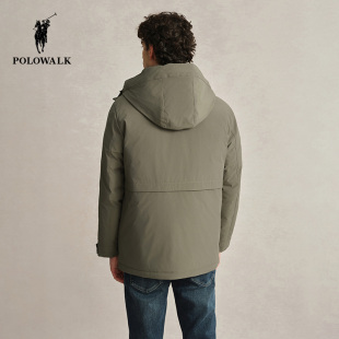 90鹅绒 中长款 POLOWALK男士 工装 加厚保暖连帽外套 羽绒服秋冬款