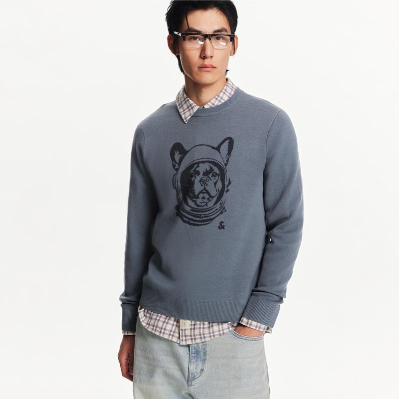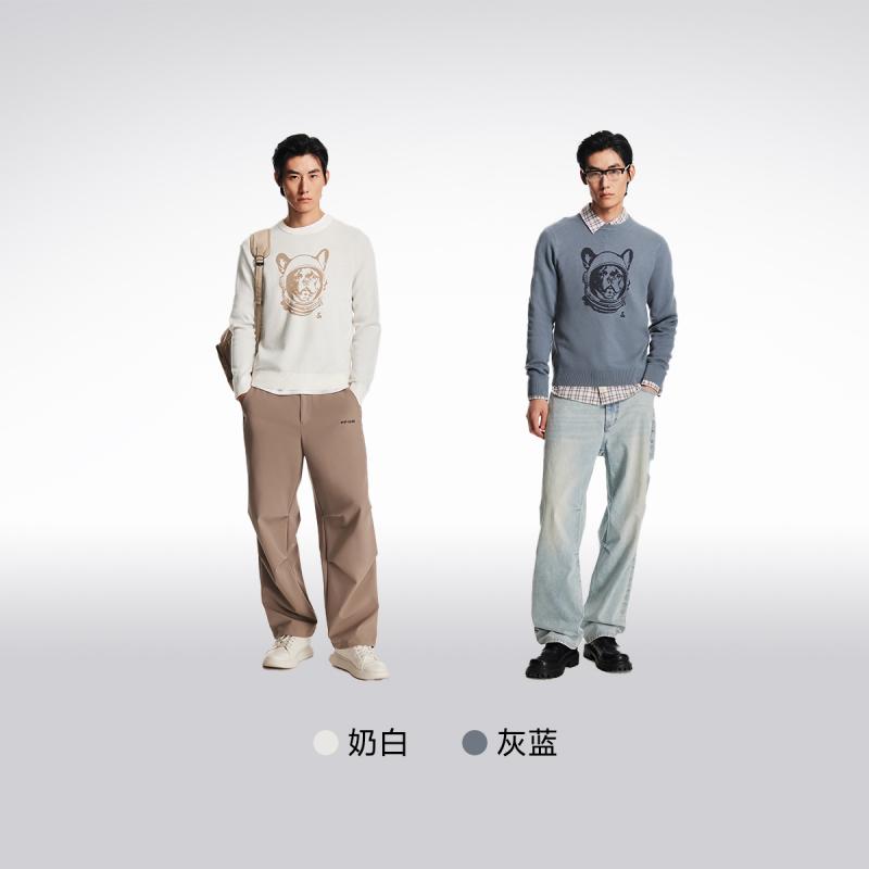 撞色法斗犬毛衣纯色上衣男装 杰克琼斯秋季 针织衫 含棉直筒男士 新款