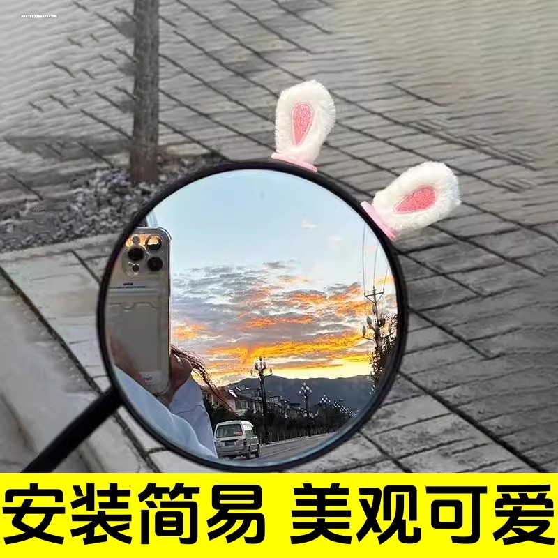 适配新大洲本田电动车后视镜装 饰毛绒兔耳朵小配件电瓶车可爱改