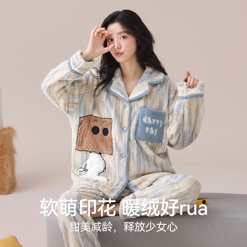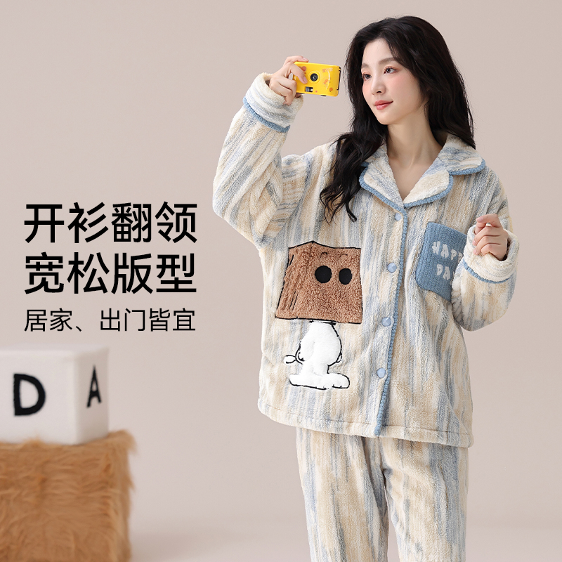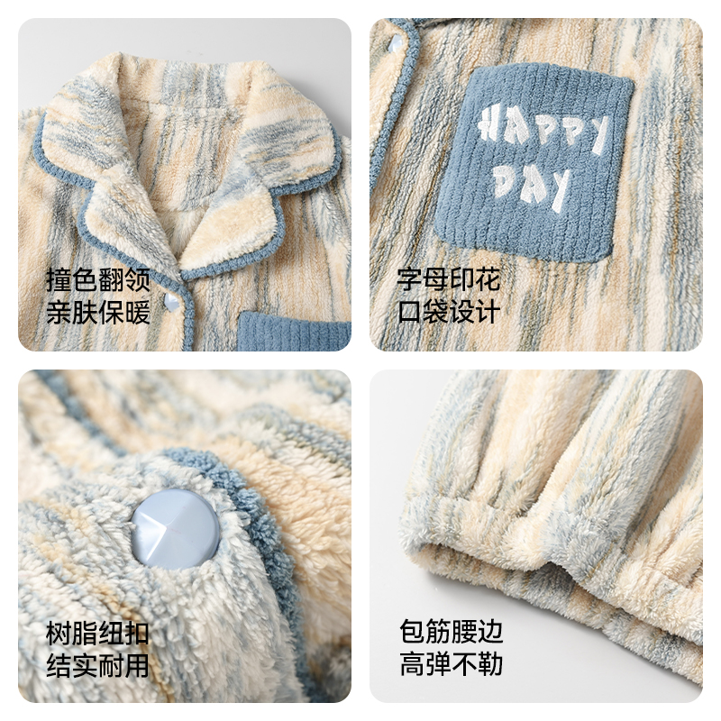 可外穿家居服套装 情侣睡衣冬季 加绒加厚珊瑚绒女士保暖法兰绒男士