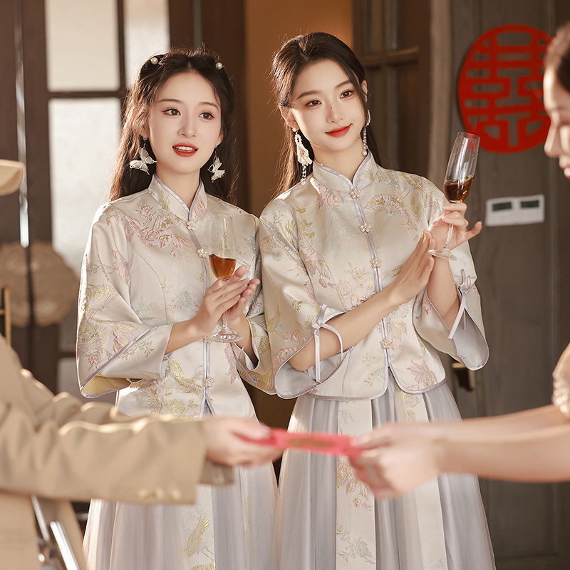 清仓特价 伴娘服姐妹裙结婚晚礼服高级感旗袍显瘦小个子伴娘服中式