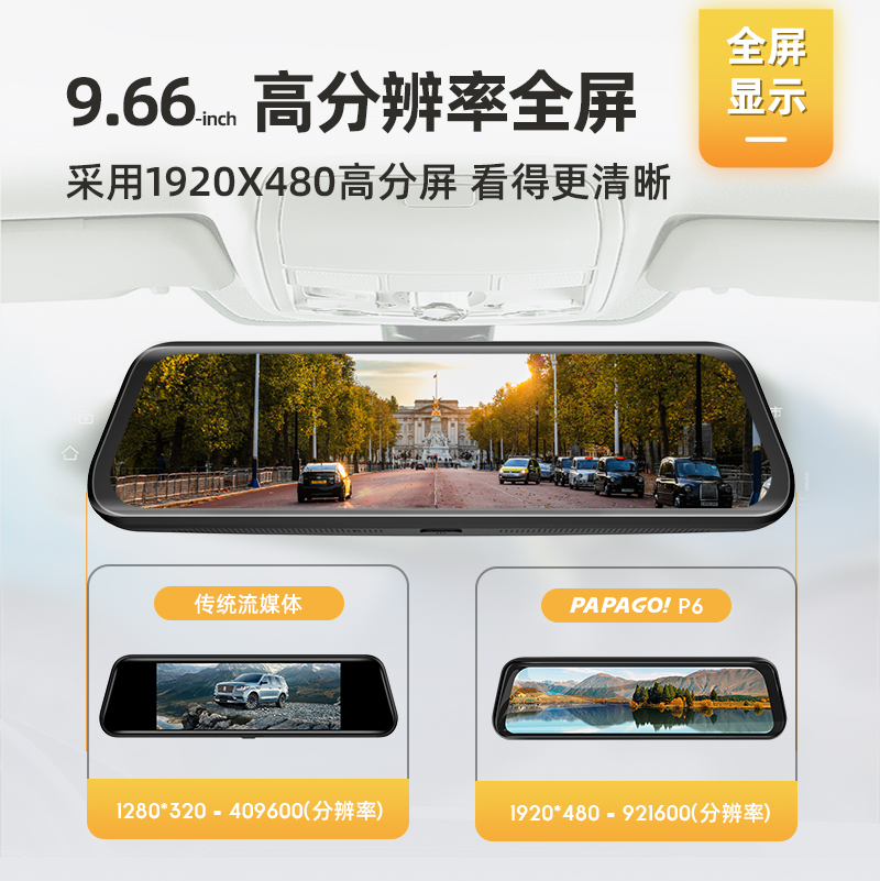 PAPAGO 免走线高清夜视倒车影像P6 专车专用流媒体行车记录仪新款