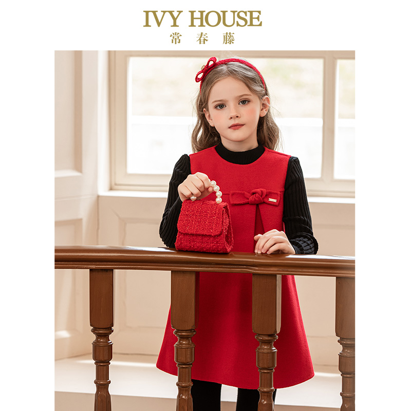 款 女童连衣裙冬季 羊毛A字背心裙子双面呢红色 HOUSE常春藤童装 IVY