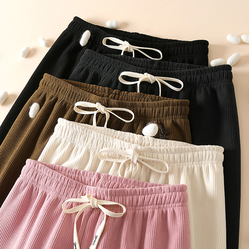 白色奶油裤 加绒阔腿裤 高腰垂感灯芯绒直筒长裤 2023新款 子女秋冬季