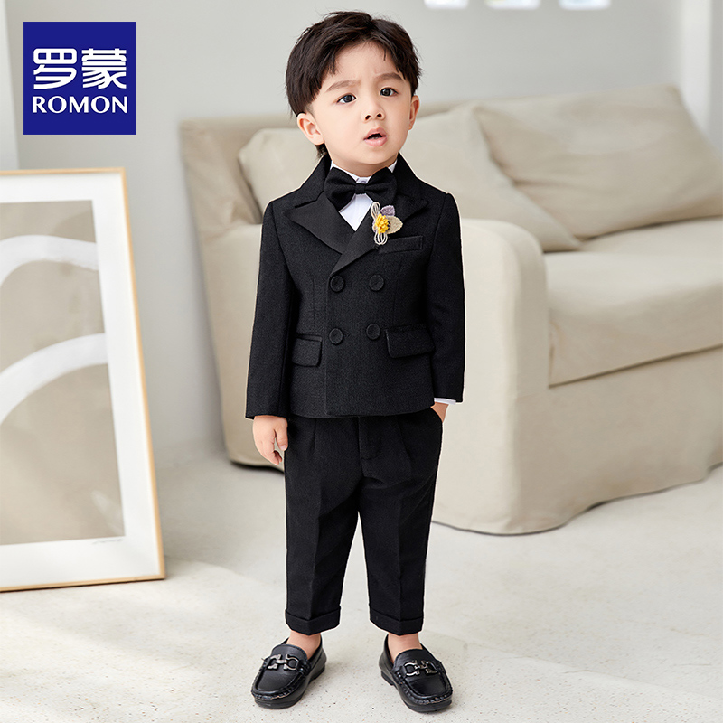 西服 男孩礼服演出男童婚礼花童宝宝周岁生日韩版 罗蒙儿童西装 套装