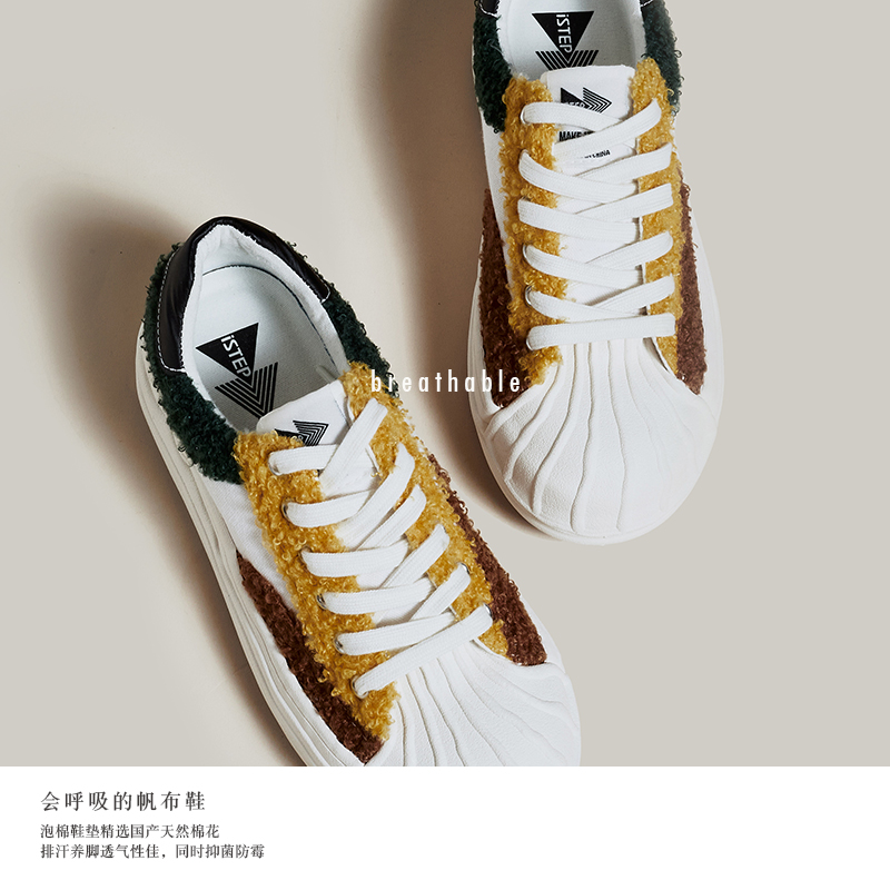 双11预售 增高休闲板鞋 百丽女鞋 带厚底德训鞋 预 子流心曲奇双鞋
