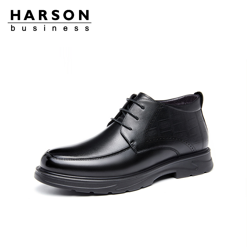商务休闲雪地靴男保暖真皮爸爸棉鞋 加绒皮鞋 高帮皮靴 冬季 哈森男鞋