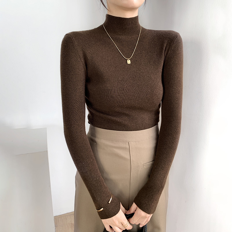 羊毛上衣 2025新款 打底衫 女半高领黑色内搭高级感秋冬针织毛衣女装
