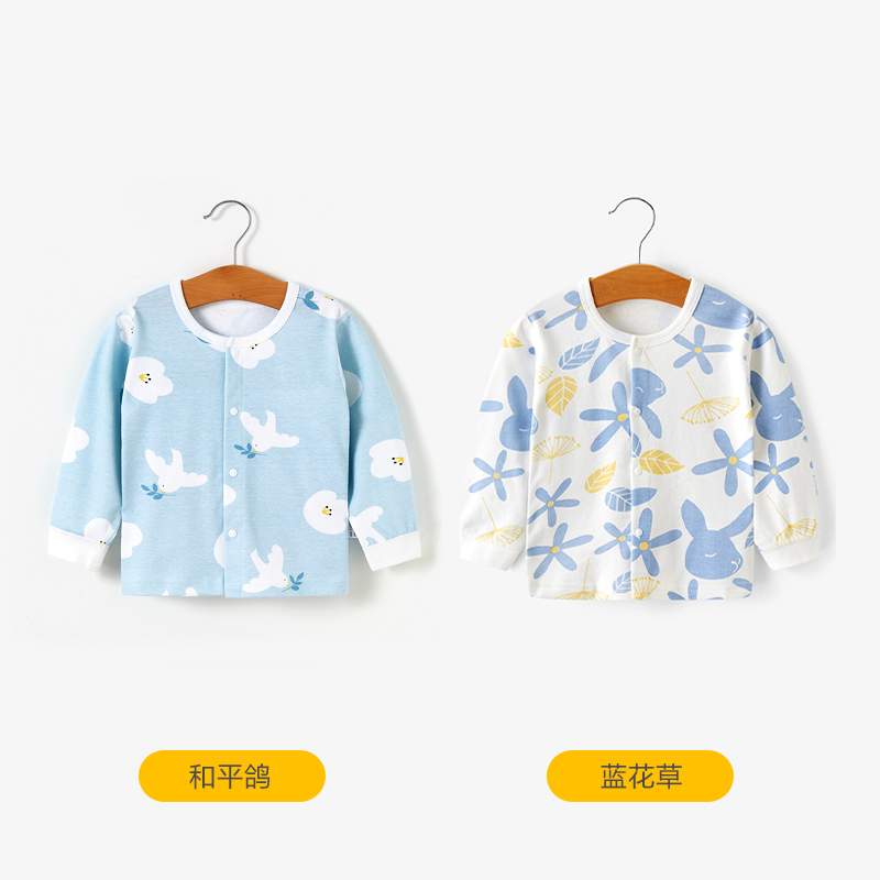 t恤卡通打底衫 2件装 上衣男女童长袖 宝宝开衫 纯棉1 儿童衣服春秋季