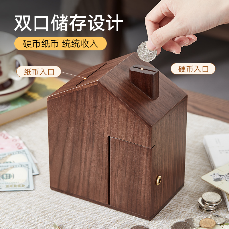 实木存钱罐只进不出2025年新款 储钱罐儿童女孩男孩储蓄罐带锁可取