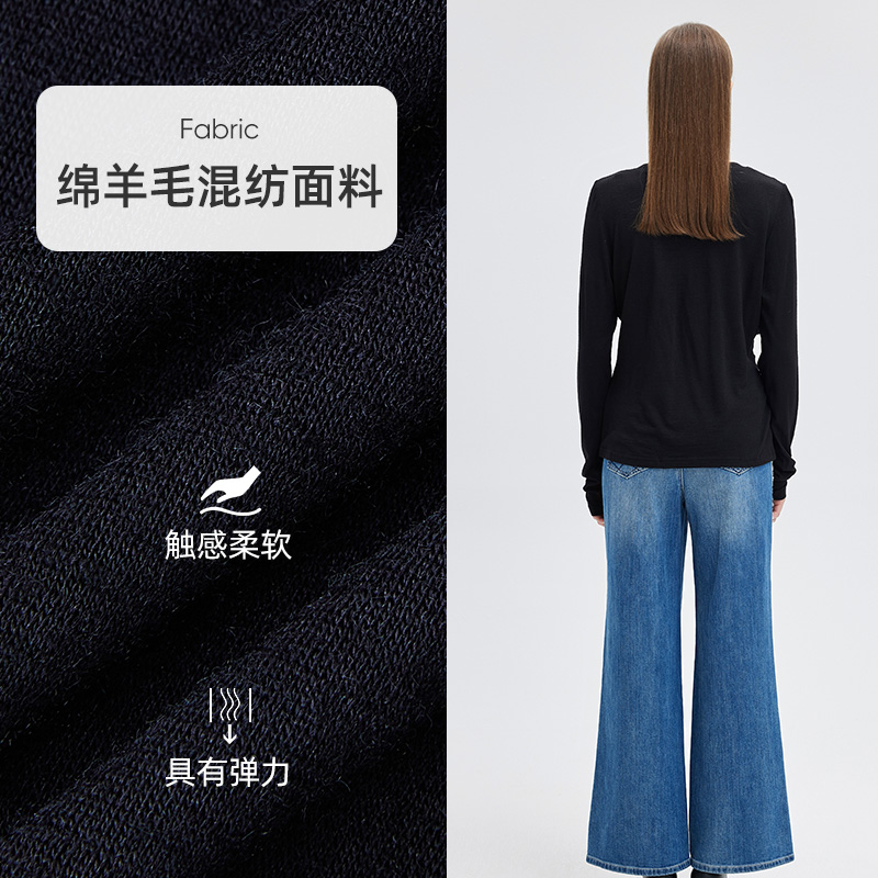 打底衫 修身 莱赛尔天丝T恤女亨利领长袖 紧身内搭上衣 Chapelle