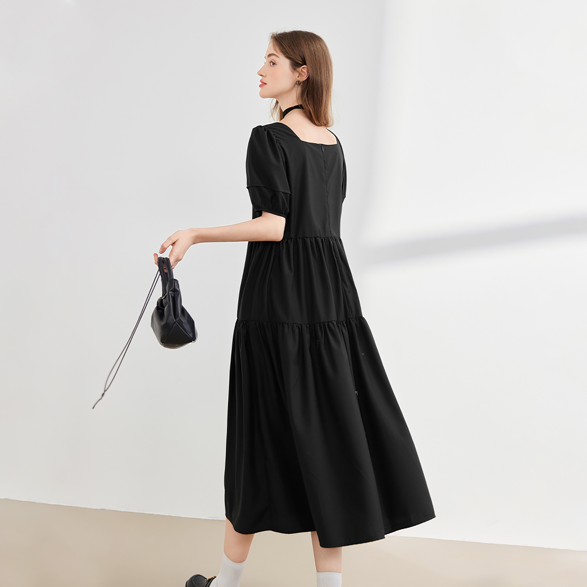 高级感泡泡袖 复古方领白色仙女连衣裙女夏季 茶歇雪纺长裙 法式 大码