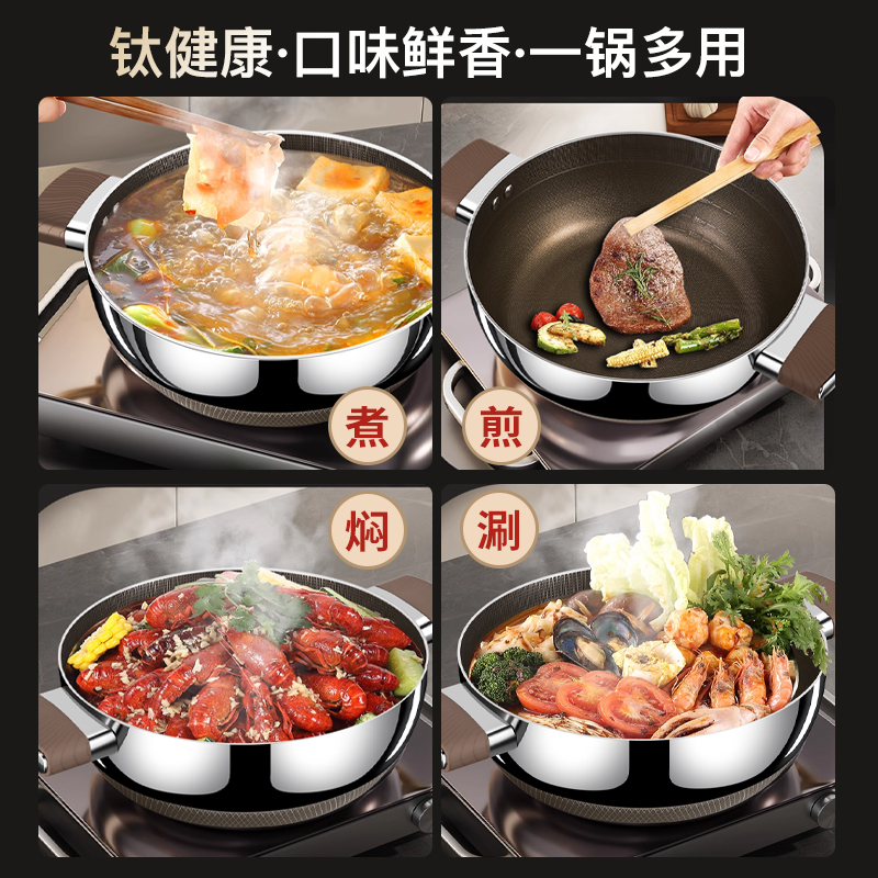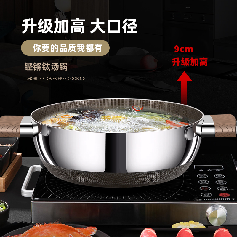 加厚不锈钢汤锅带盖汤桶大容量家用商用双耳电磁炉明火通用卤肉桶
