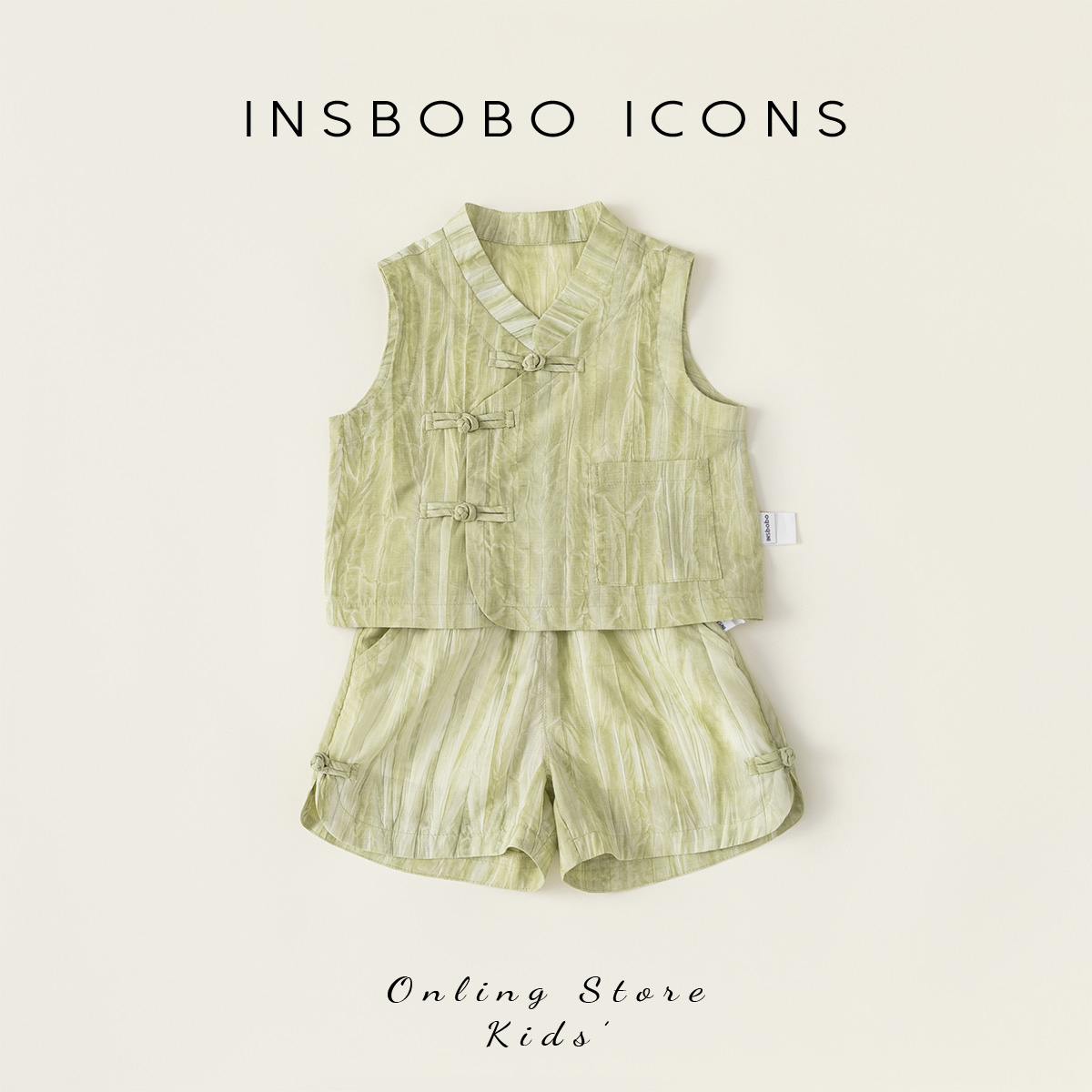 无袖 INSbobo女童夏季 汉服宝宝中式 儿童新款 背心两件套洋气夏 套装