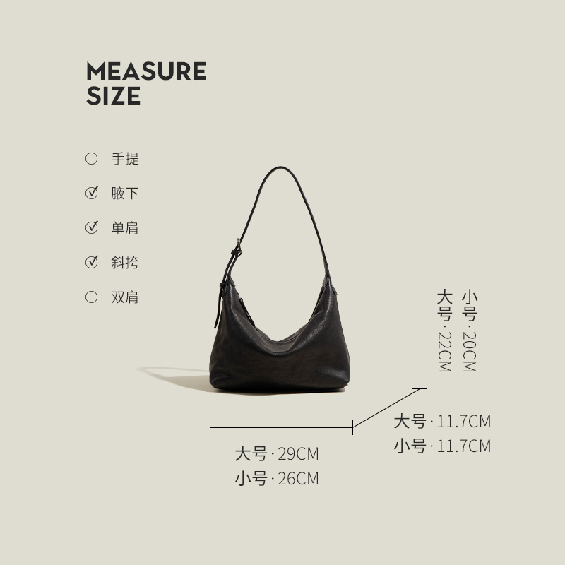 暮思小姐植鞣牛皮腋下经典 hobo包百搭休闲单肩通勤包真皮饺子包女