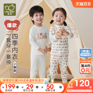 纯棉宝宝秋衣秋裤 拉比儿童内衣校服内搭套装 家居服保暖睡衣2套装