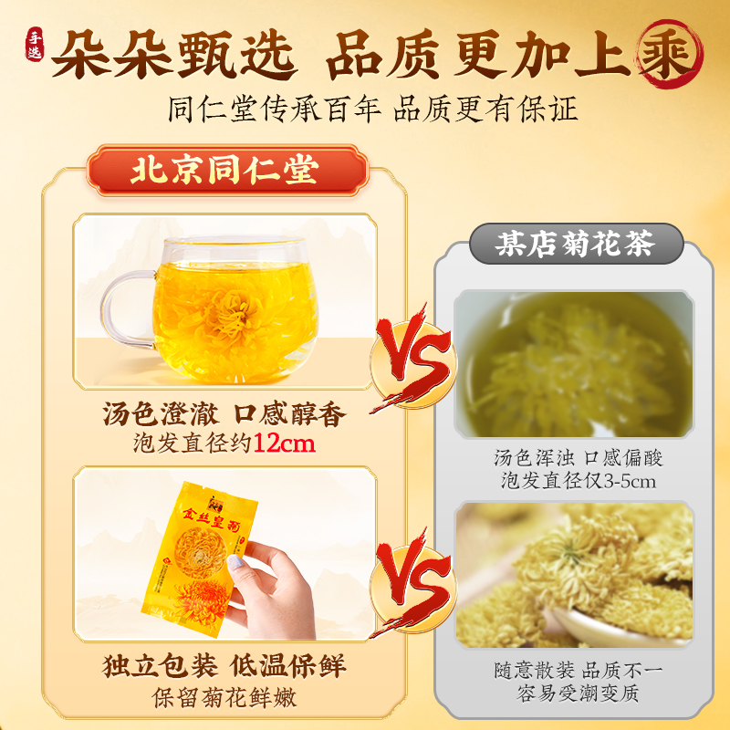 北京同仁堂金丝皇菊花茶級特大朵贡菊信盛官方旗舰店去火清堂热解
