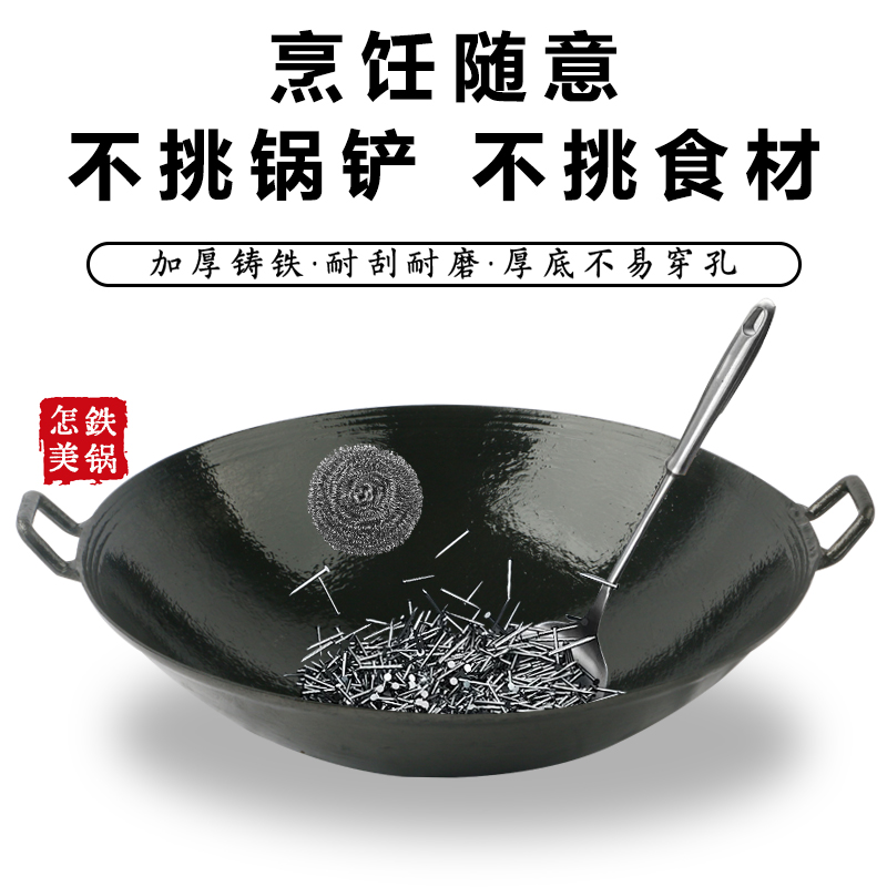 正品 铁锅无涂层家用熟铁炒菜锅不粘锅适用燃气灶专用炒锅 传统老式