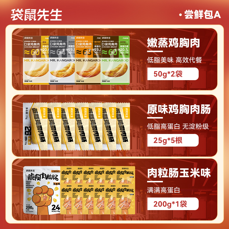 袋鼠先生尝鲜礼包健身鸡胸肉代餐零食轻食高蛋白饱腹鸡肉食品