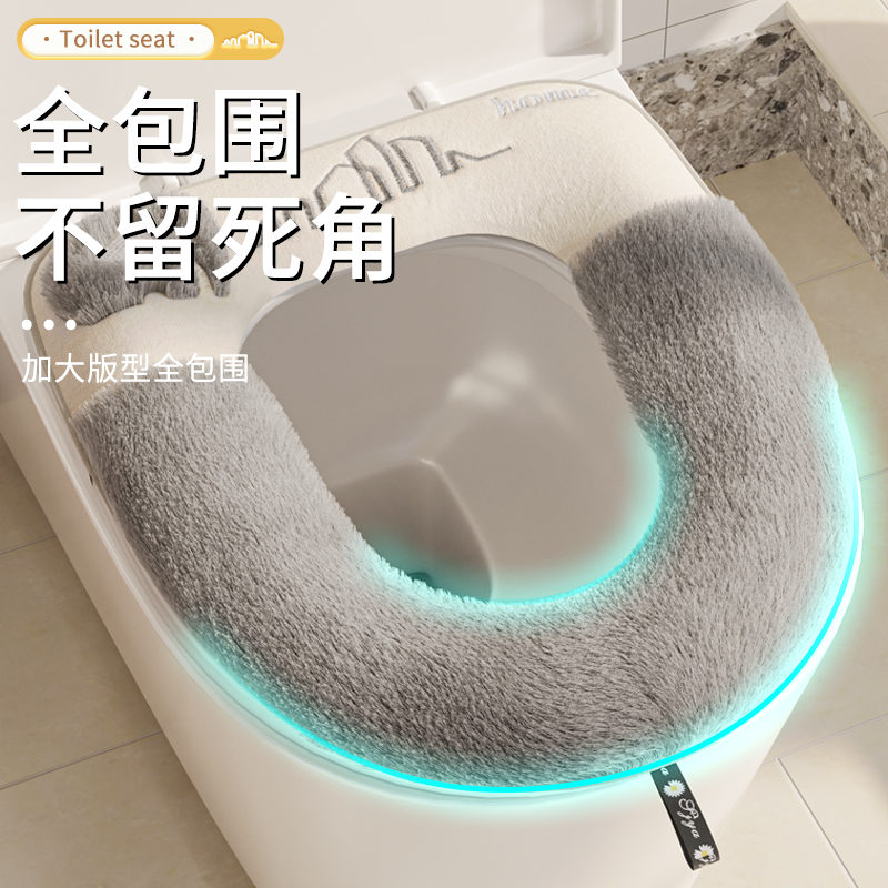 马桶坐垫绑带款 通用加绒粘贴座便器垫圈加厚马桶垫 秋冬坐便套四季