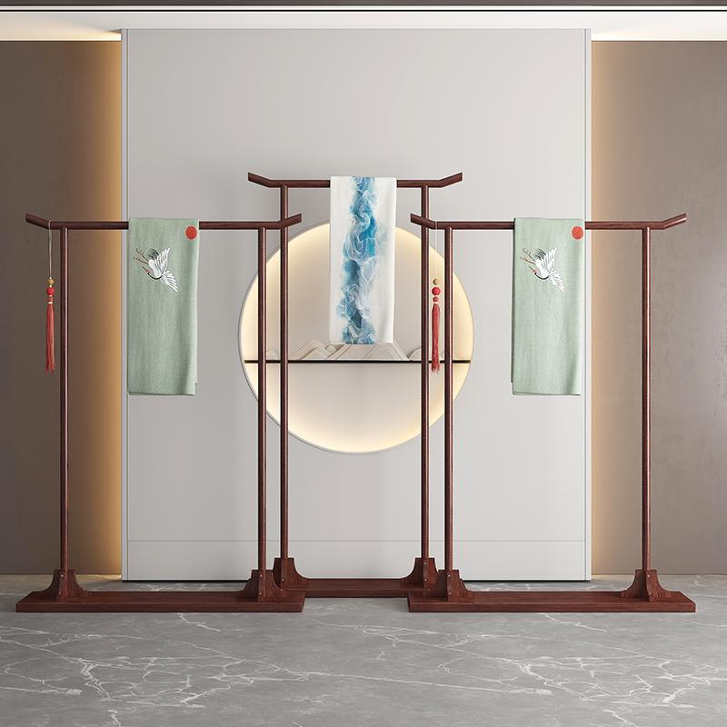 新中式 展示民宿实木复 古典衣帽架落地简易挂衣架卧室家用秀禾服装