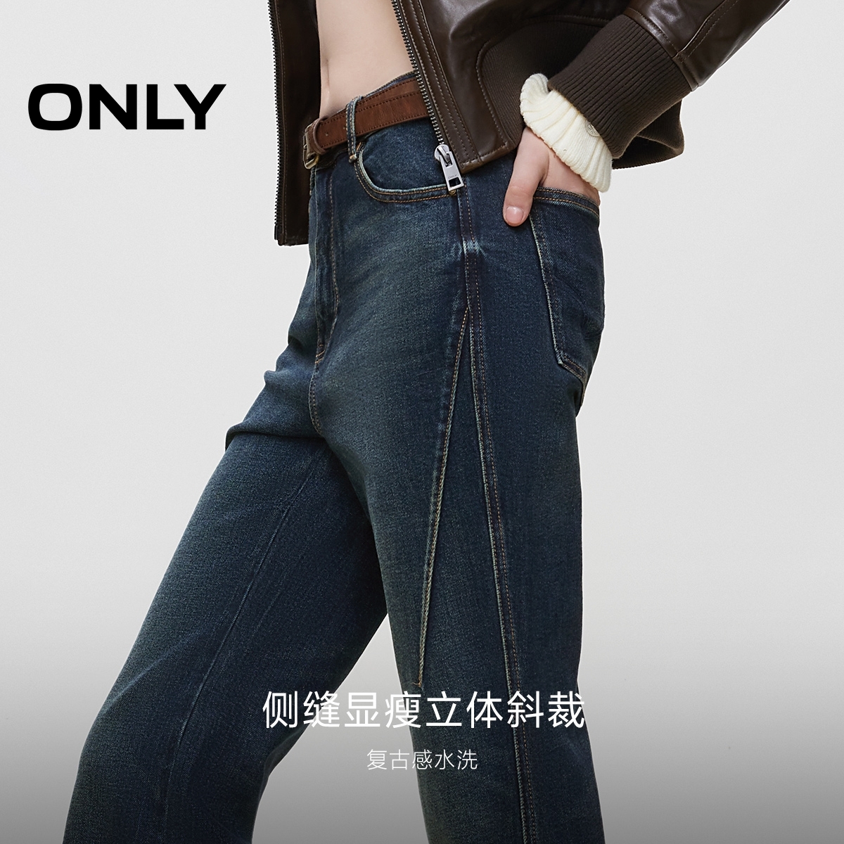 毛边侧分割线高腰阔腿显瘦牛仔裤 复古水洗个性 女 新款 ONLY2025秋季
