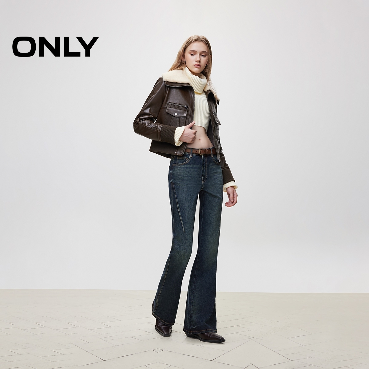 牛仔裤 ONLY2025冬季 长裤 通勤小个子友好做旧水洗高腰喇叭裤 女 新款