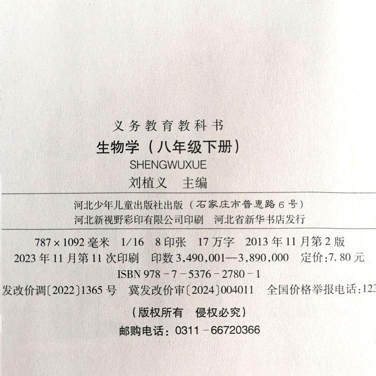 初二下册生物课本全新正版 初中8八年级下册生物学课本冀教冀少版 社冀教版 河北少年儿童出版 教材教科书JS版