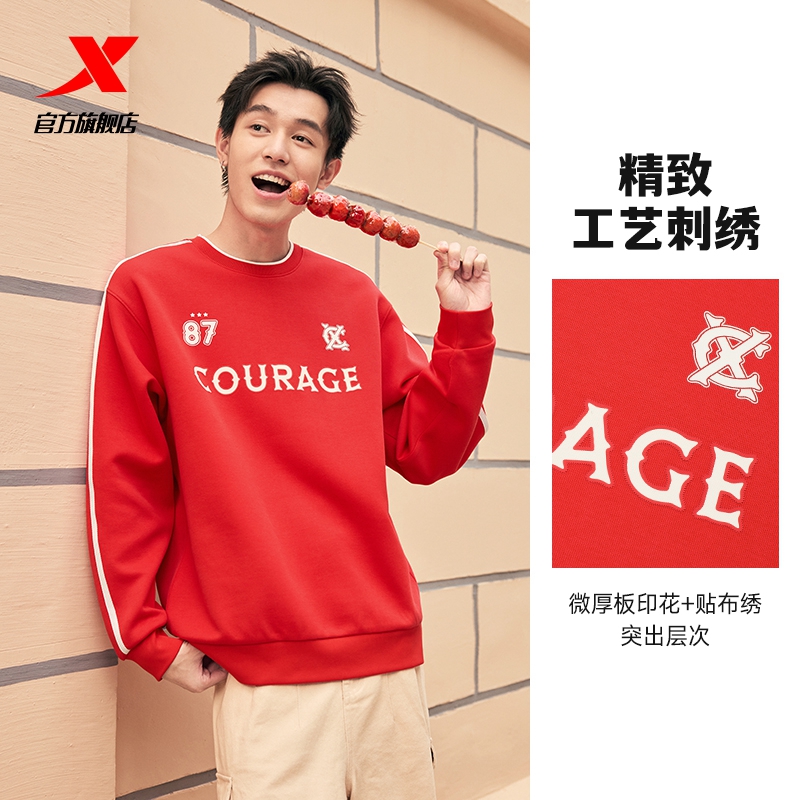 男装 特步卫衣男2025秋季 潮流圆领套头运动套头衫 加绒保暖时尚 新款