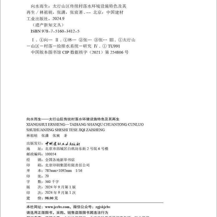 林祖锐等著.中国建材工业出版 ISBN 社 遗产新知文丛 9787516034125 2024 向水而生:太行山区传统村落水环境设施特色及其再生