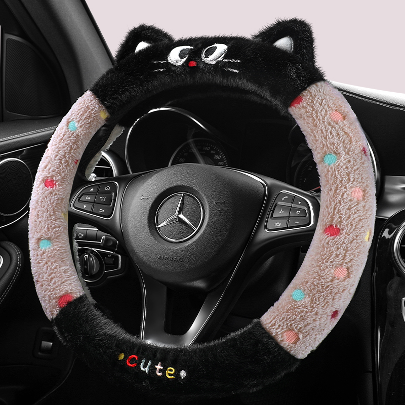 冬季 把套车内饰品 毛绒汽车方向盘套女士可爱短毛保暖潮牌D型新款
