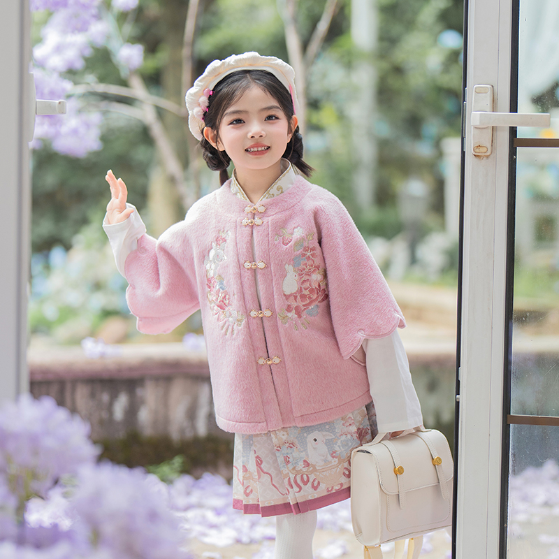周岁礼 冬外套加厚拜年花瓣袖 观山见童装 汉服马面裙女童拜年服套装