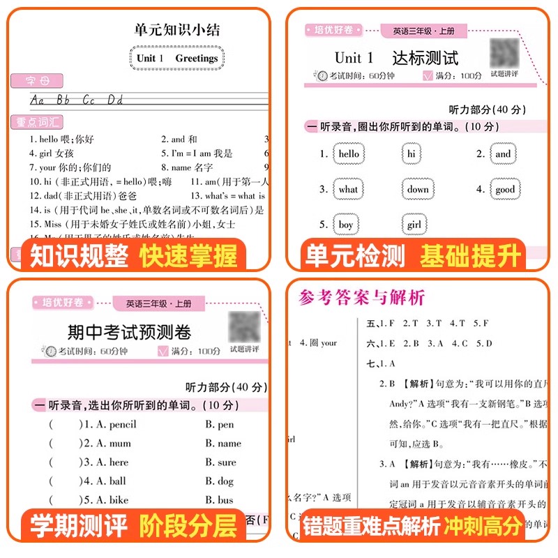 英语试卷三年级上册培优好卷测试卷全套小学四五六年级上下册试卷同步练习题英语单元 人教精通版 期中期末考试卷子 新疆天津专版