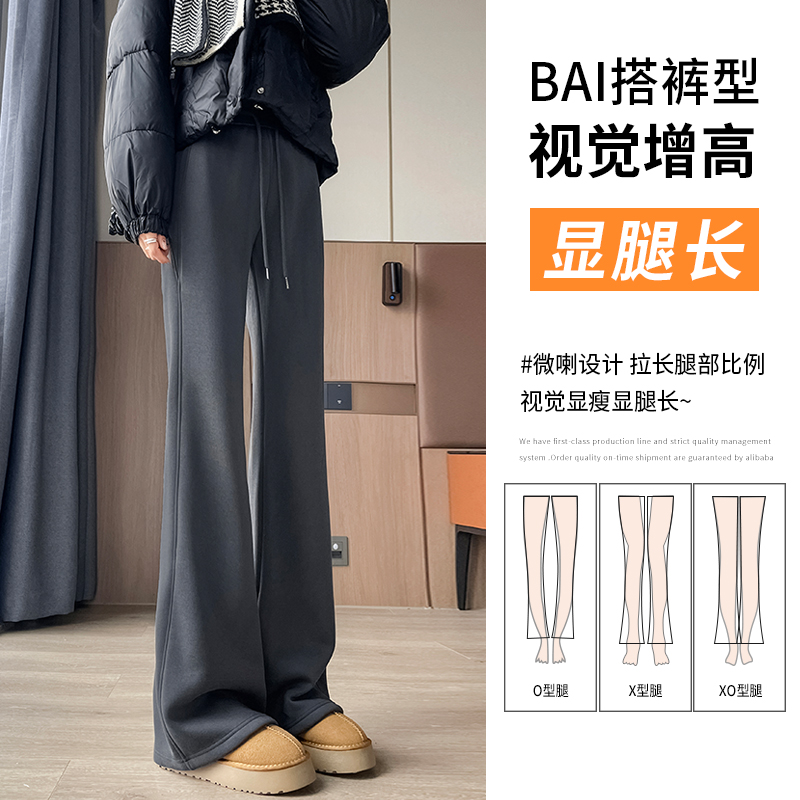 女士显瘦休闲瑜伽裤 黑色微喇叭裤 2025新款 加绒运动卫裤 子 女春秋季