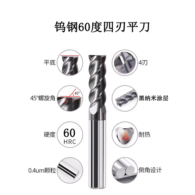 60度钨钢铣刀硬质合金铣刀4刃不锈钢专用cnc数控刀具立铣刀平刀