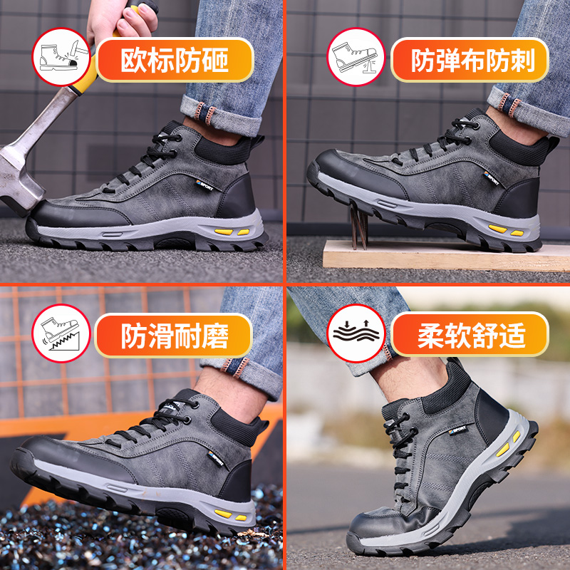 加绒靴子棉 士防砸防刺穿高帮电焊老保工地工作钢头冬季 劳保鞋 男款
