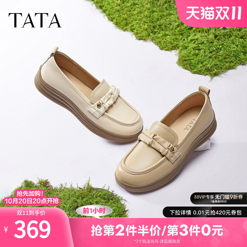 新款 TATA他她白色乐福鞋 春季 女软底单鞋 7A425AA5 女一脚蹬小皮鞋