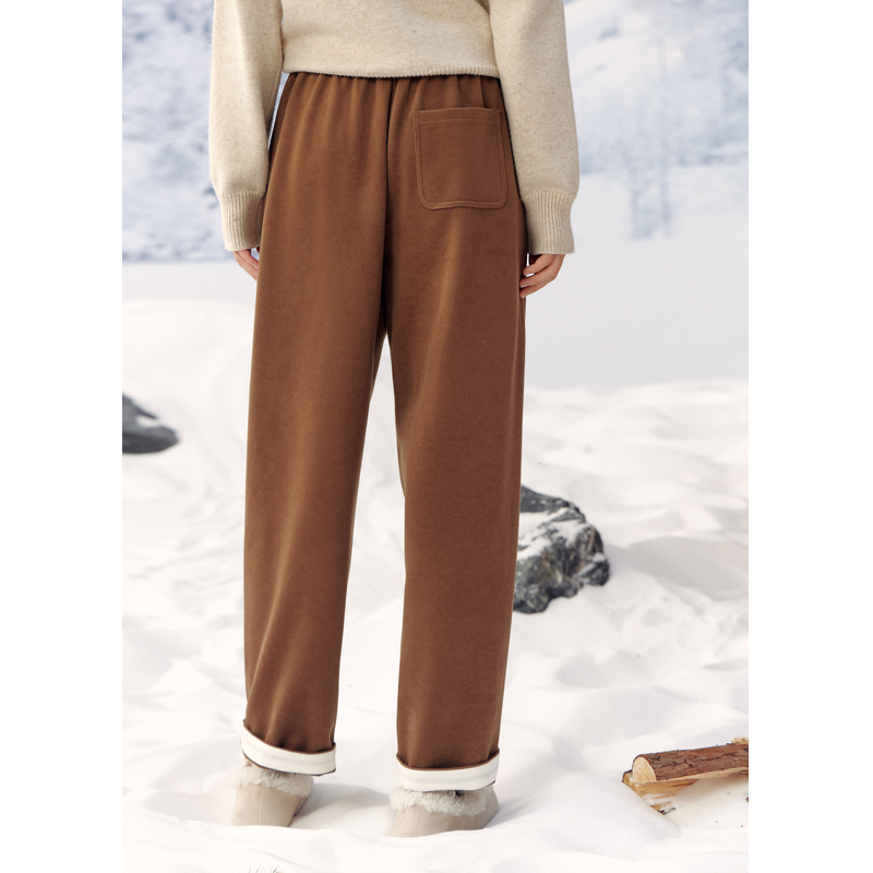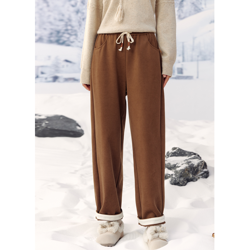 美拉德风宽松保暖休闲加厚卫裤 新款 女冬季 紫涵牛筋高腰百搭直筒裤
