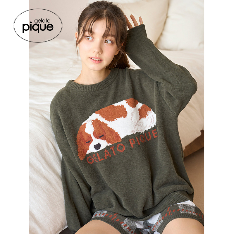 居家PWNP245139 半边绒格纹系带短裤 gelato pique秋冬女睡裤
