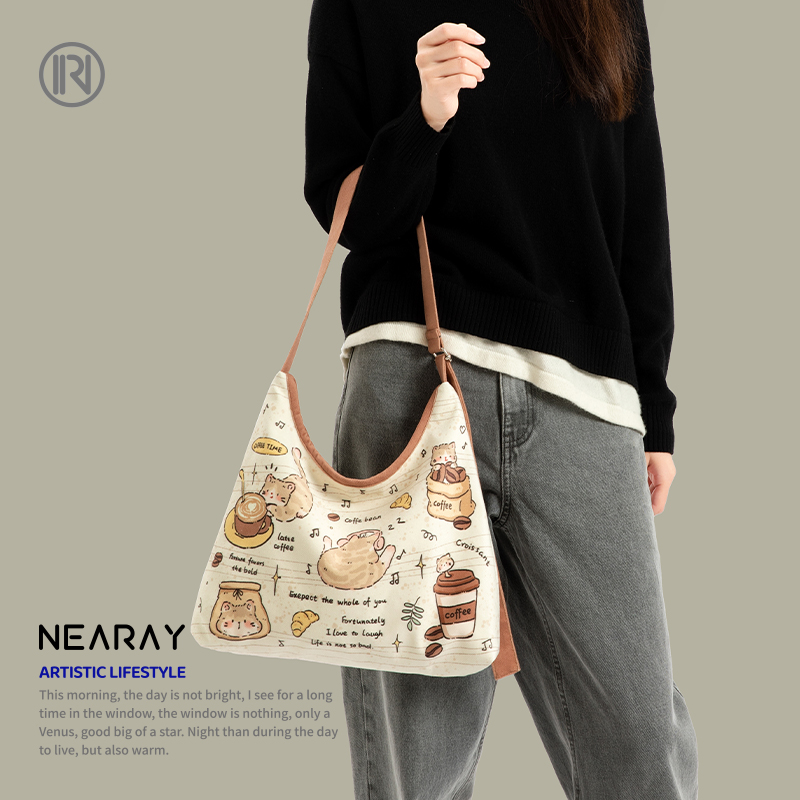 可爱卡通猫咪插画单肩包休闲百搭斜挎包 2025新款 尼睿x劈叉 熊熊