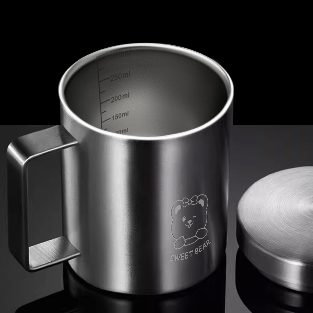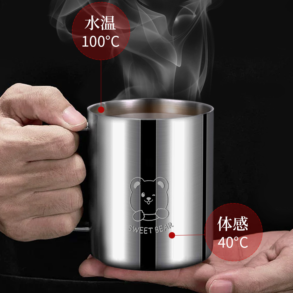 不锈钢杯子马克杯带盖316食品级咖啡杯女办公室刻度量杯保温水杯