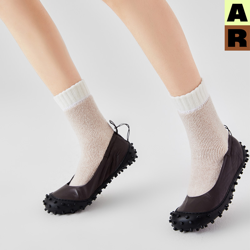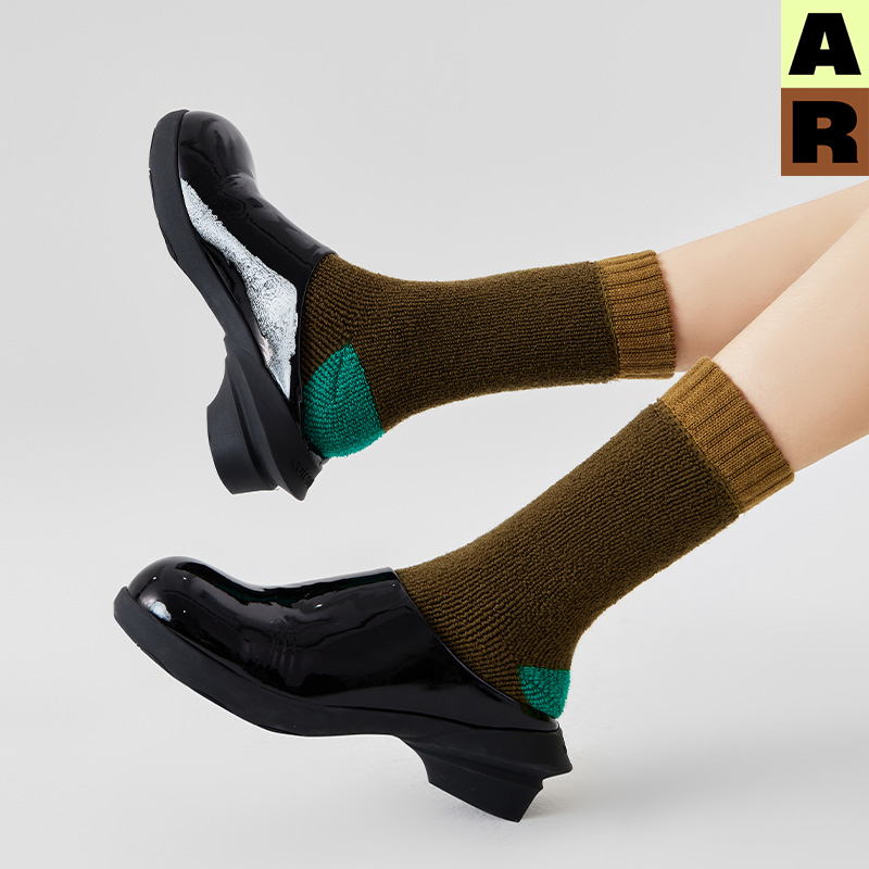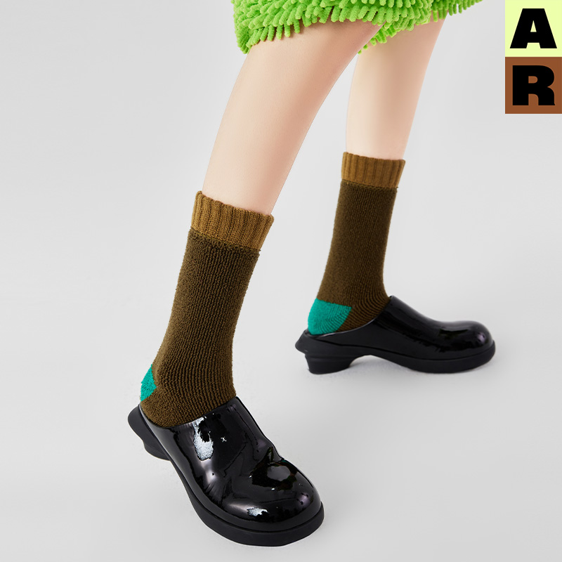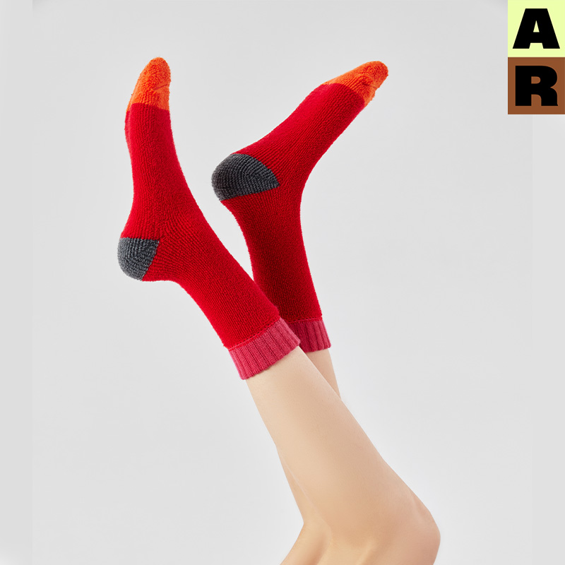 AR原创羊毛撞色毛圈中筒袜子女红色新款 秋冬地板袜ins潮r线基础线