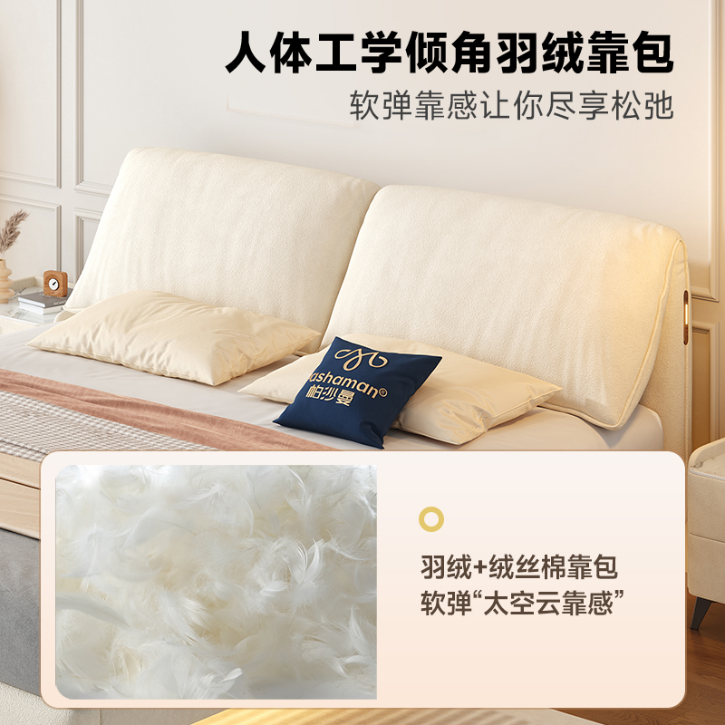 帕沙曼现代简约悬浮床奶油风主卧1米8双人床大象耳朵布艺软包婚床