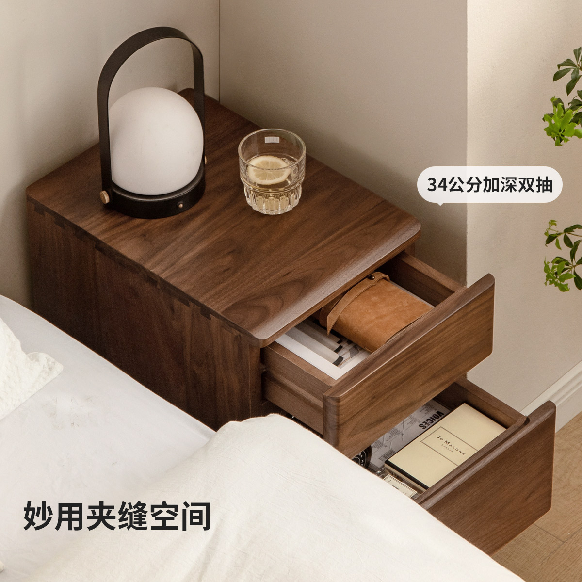 方迪黑胡桃床头柜新中式 窄边床边柜简约卧室床头储物柜实木收纳柜
