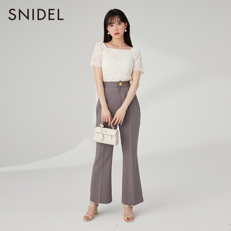 裤 气质百搭纯色高腰压褶喇叭休闲西装 SWFP232136 时尚 SNIDEL春夏款
