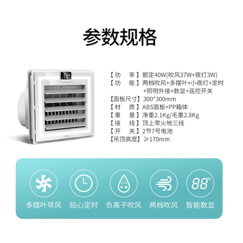 雷士照明厨房嵌入式 凉霸卫生间集成吊顶冷风换气扇强力冷霸电风扇
