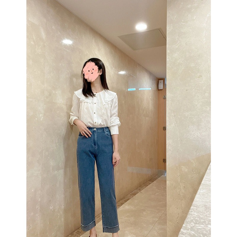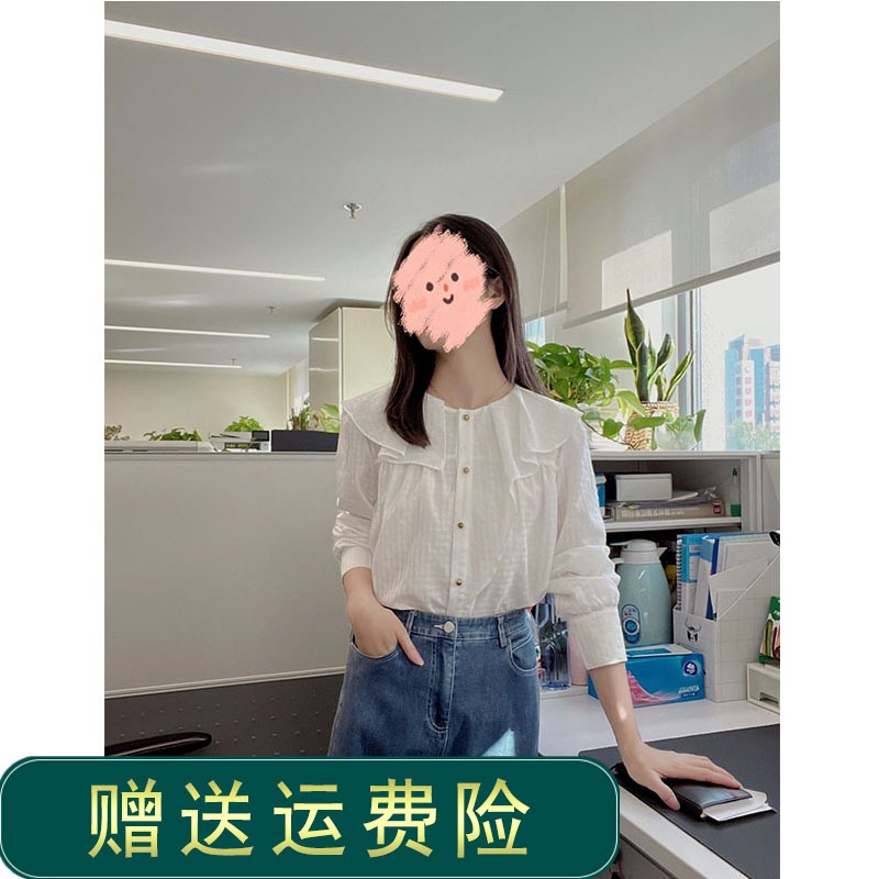 小衫 法式 设计感小众宽松衬衣气质长袖 女夏季 上衣 娃娃领荷叶边衬衫